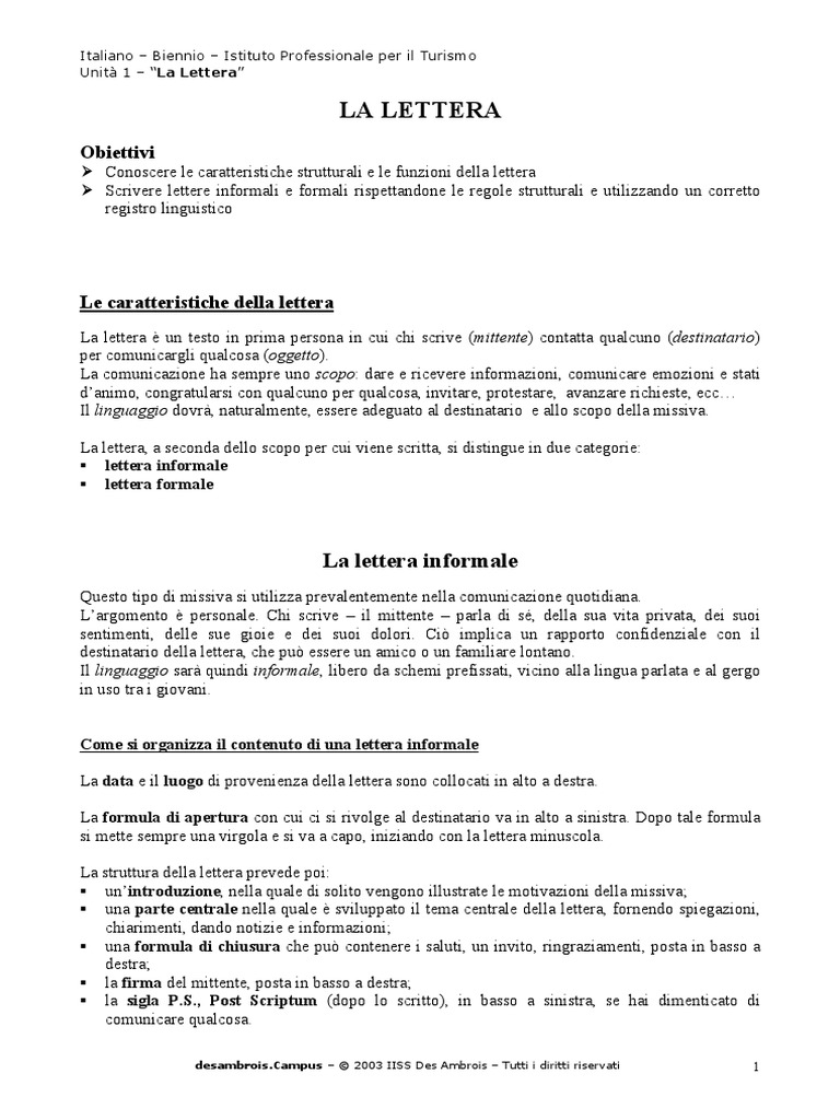 Modello Lettera Formale - Informale | PDF